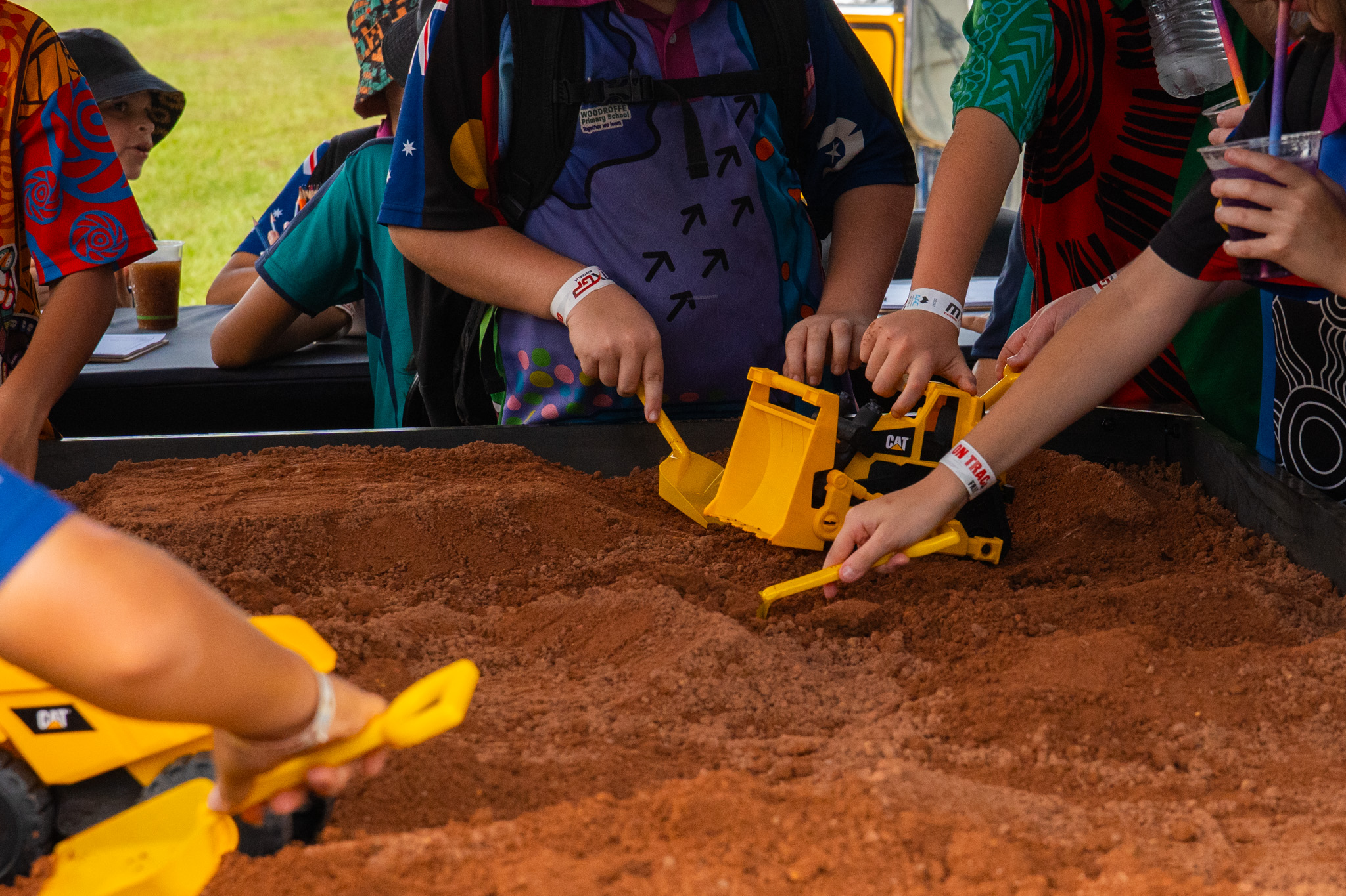 Kids got hands-on with the Protraxx CAT Track Builder Table, where they could build their own miniature motocross circuits.