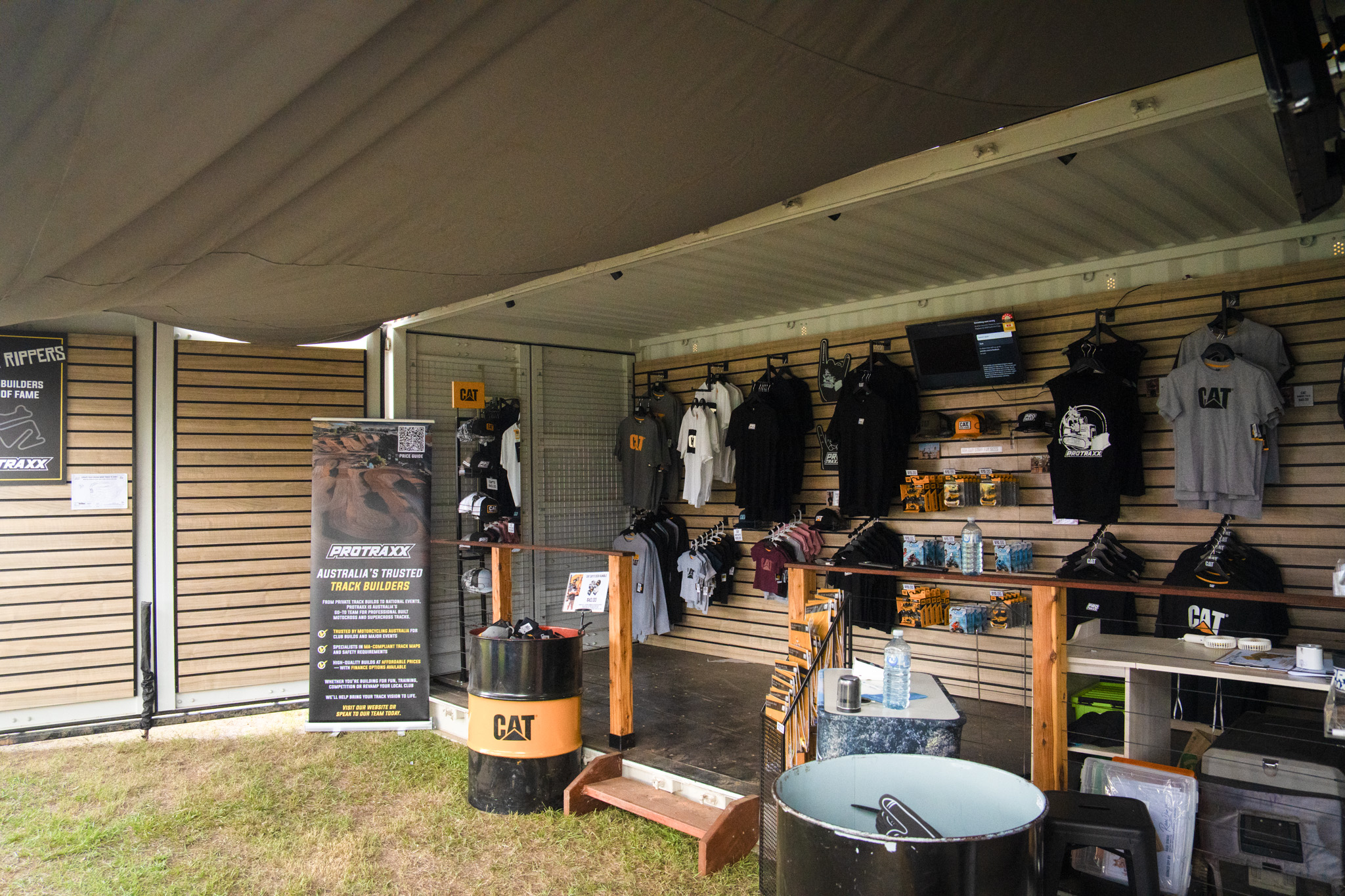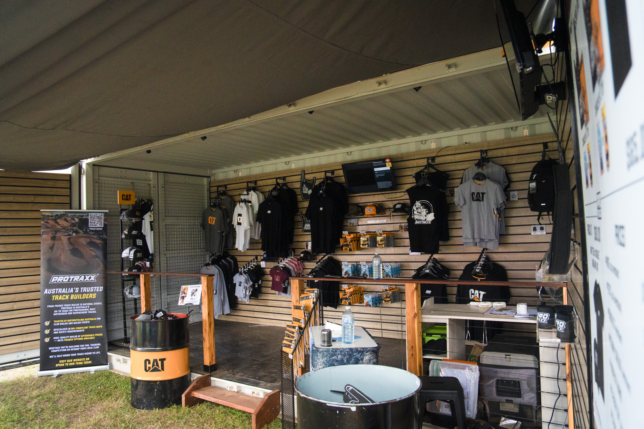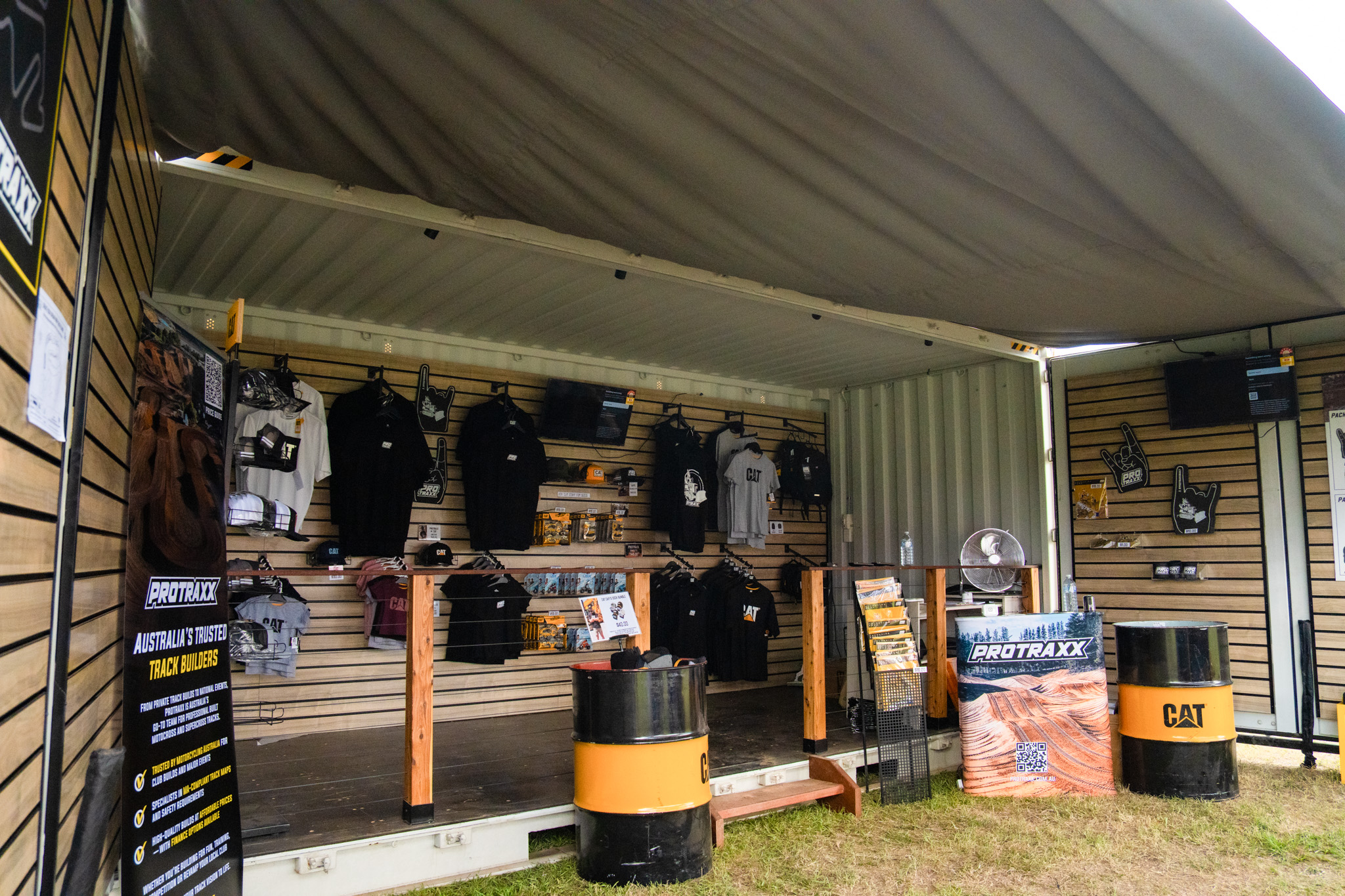 MXGP fans browsed and purchased Protraxx and CAT merchandise, including hats, shirts, and toy bikes / CAT machinery.